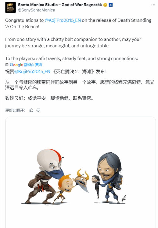 昨日,PS5独占新作《死亡搁浅2》正式发售后,许多PlayStation第一方工作室纷纷发去祝贺万达策略,并绘制了各具特色的庆祝插画。
